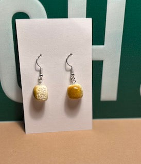 These Dinner Roll Earrings are a handmade delight — so realistic, they look fresh from the oven! Each pair is carefully sculpted from polymer clay with detailed texture and a golden finish that captures the look of a warm, fluffy dinner roll.